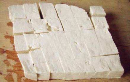 2,把嫩豆腐清洗幹凈,切成小塊,因為嫩豆腐比較軟,如果煎的話就不容易成型,所以煮著吃更合適。