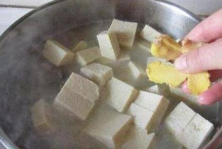 3,鍋中倒入清水,用大火煮開,把薑切成絲放進去鍋裡,再放入炸好的泥鰍,煮到泥鰍變軟瞭就可以加豆腐瞭。