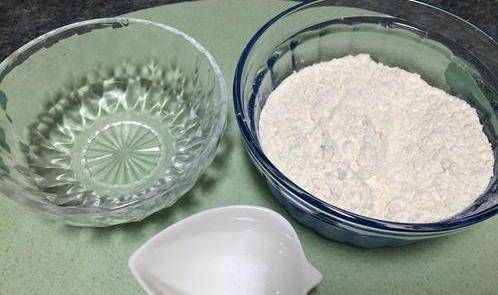 需要材料:普通面粉100g,80度熱水65g,鹽1g