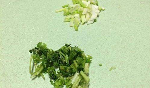 調料配料:雞蛋2個,火腿腸2根,生菜葉2片,蔥10g,香菜8g,蒜蓉辣醬適量
