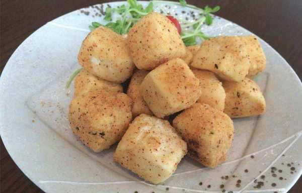 椒鹽豆腐是一道美味可口的地方小吃,屬於魯菜系,制作簡單,主材料為豆腐。外脆裡嫩,風味獨特。豆腐營養價值高,蛋白質含量高。