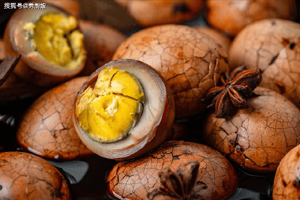 材料:鴨蛋6個、茶葉、八角、香葉、生薑、醬油、鹽、水適量。