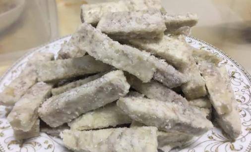 首先我們先準備好芋頭,準備好芋頭以後把芋頭清洗幹凈,然後把皮削掉之後切成兩厘米左右的條狀,切好以後先放在一旁備用。