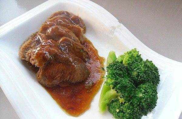 4.拿出去掉薑,蔥,反扣入碟內,另燒鍋加油,下入原汁燒開,用濕生粉勾芡,淋入熟雞油,澆入猴頭菇上,旁邊擺上西蘭花即成
