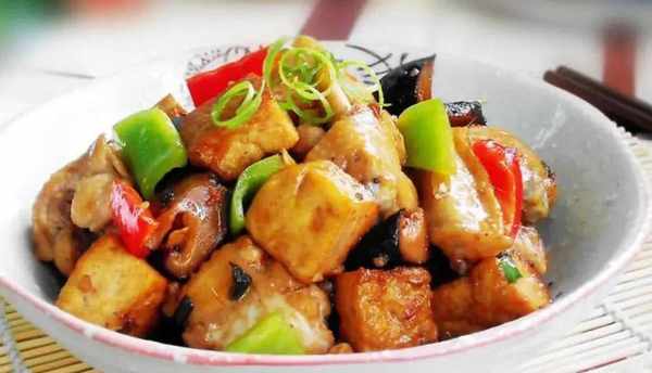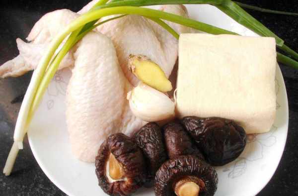 食材準備:雞全翅3隻,幹香菇5朵,老豆腐1小塊,青椒適量,紅椒適量,蒜1瓣,蔥2根,薑少許,鹽適量,油適量,醬油適量,白糖適量,料酒適量