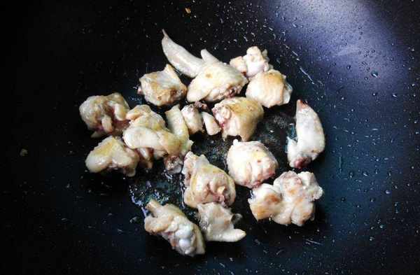 6.鍋中放油,把醃制好的雞翅煎一下,把兩面煎出微微金黃,盛出備用