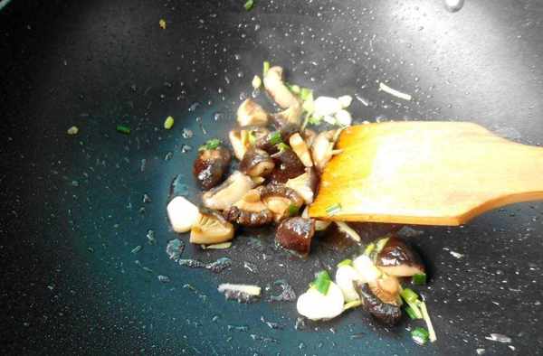 7.鍋中留少許油,把蔥薑蒜炒出香味,再加入香菇炒幾下。