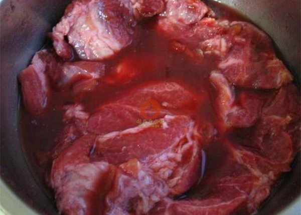 8;醃制豬肉的碗加入適量清水攪拌均勻後倒入電飯鍋中