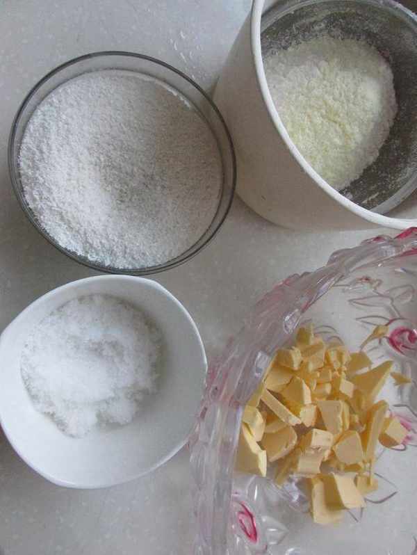 黃油85克,低粉90克,椰蓉130克,白糖85克,雞蛋1個,奶粉15克。