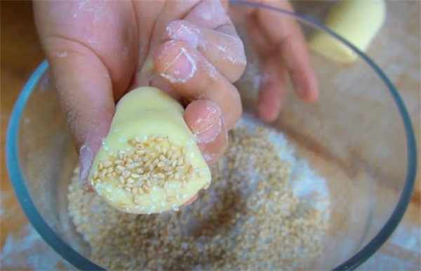 10.表面刷一些蜂蜜水,再撒上白芝麻。