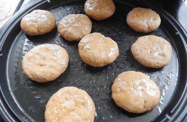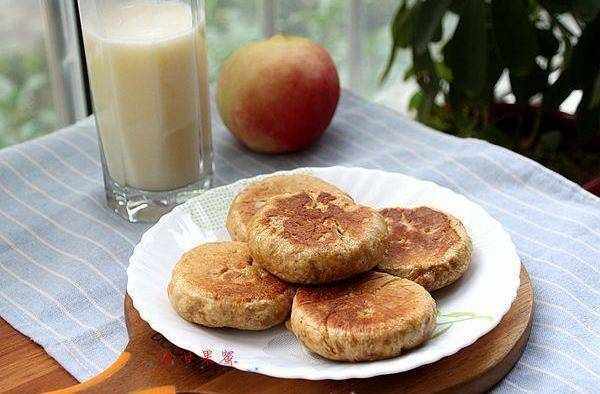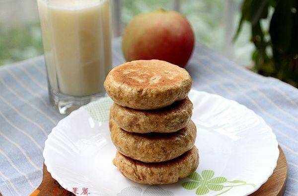 4、做好的小餅放在電餅鐺或是平鍋上煎制。涮一層薄油,放上小餅,淋少許水,蓋上電餅鐺,按餡餅鐺,時間到就好瞭。煎至兩微黃。小提示:加少許水煎制出來不會太幹。軟綿可口。配上一杯玉米汁,非常完美的早餐。如果用平鍋,也是放小餅之後,加少許水,加蓋,煎好一面再翻面,煎另一面。