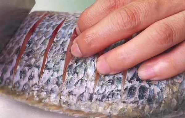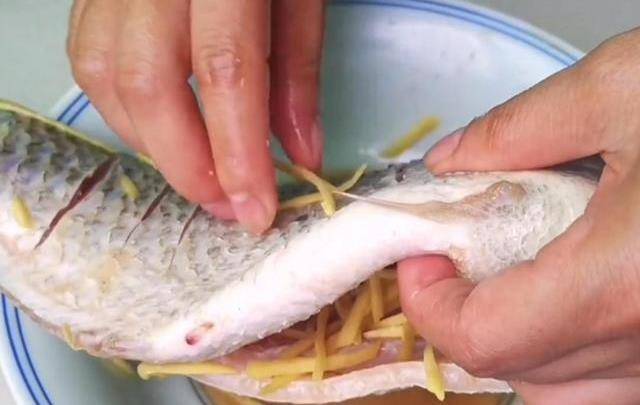 塗抹好以後,把薑絲塞到魚肚子裡,醃制三十分鐘。