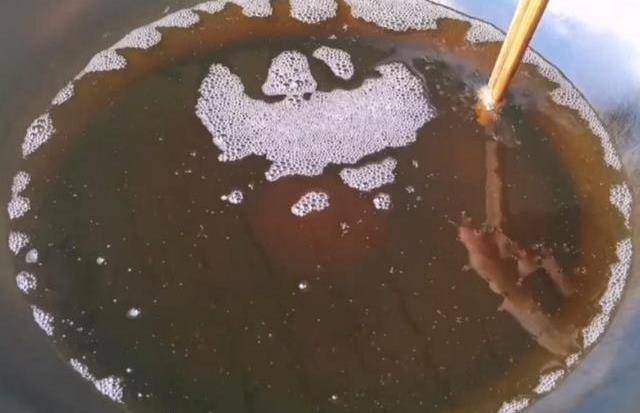 中小火不停的炒,把它炒至濃稠起大泡,再倒入一勺明油使魚做出來更明亮,把它翻炒均勻即可出鍋。