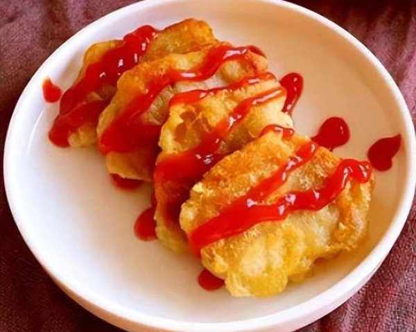 2、取兩顆雞蛋打入碗中,用筷子把蛋液打散。平底鍋刷上滿滿的食用油,雙手蘸點水,把醃制好的雞肉泥捏成長塊裹上雞蛋液後放在平底鍋上,一面煎至定型後翻面,直到兩面煎至金黃就可以裝盤瞭,煎好的雞塊擠上番茄醬,好看有好吃。