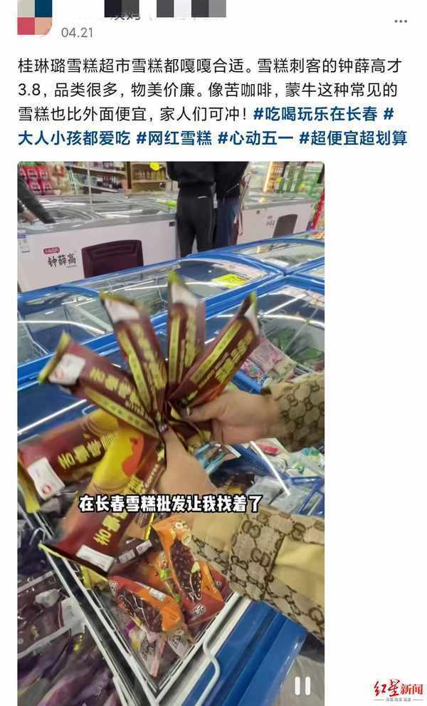 一根鐘薛高隻要3.8元,雪糕“刺客”變“俠客”?日前,一則東北雪糕店探店視頻顯示,“五一”假期在吉林省長春市亞太大街繁榮路上的桂林璐超市裡,曾被稱為“價格刺客”的鐘薛高隻需要3.8元即可團購獲得,微博平臺相關話題#五一來東北玩總該吃點雪糕吧#下,關於東北雪糕價格低的討論引發熱度。