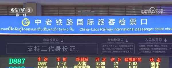 記者 范紫霄:現在是中午12時30分,這趟列車已經到達瞭磨憨站,也是這趟列車在我國境內的最後一站。跨境前往老撾的旅客需要攜帶全部行李下車辦理通關等一些相關手續,然後繼續返回這列我們乘坐的D887次列車,通過畫面中的友誼隧道,跨越國境,在今天傍晚6時38分抵達老撾首都萬象。