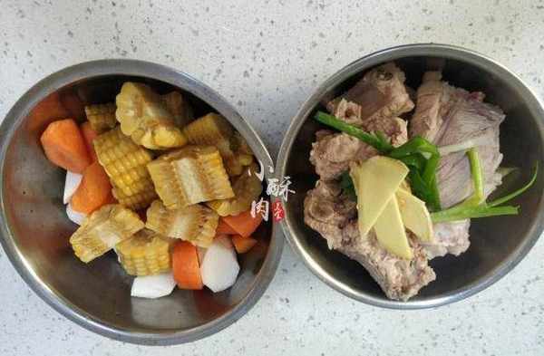 準備食材:排骨塊適量,用清水浸泡半小時,玉米一根,胡蘿卜一根,長山藥一段。(山藥有補脾養胃,生津益肺的功效,而胡蘿卜具有豐富的胡蘿卜素、維生素A,搭配排骨、玉米一起煲湯,不僅營養豐富,味道更是沒得說)