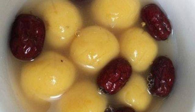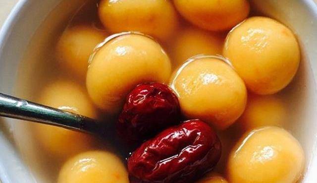 6:另起鍋,把攪拌好的紅糖水倒進鍋裡,開小火慢慢熬,熬到紅糖水粘稠的時候出鍋倒在湯圓上面,傢裡有蜂蜜的時候,可以倒上一點蜂蜜攪拌均勻就可以吃瞭。