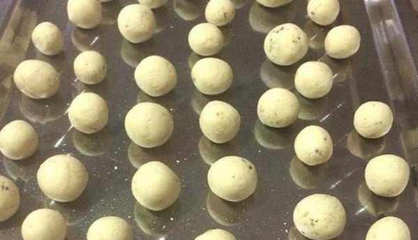 4:揪起一塊面團,團成圓球放在一邊作為備用,圓球不要團的很大,和傢裡平常吃的丸子一樣大就可以。