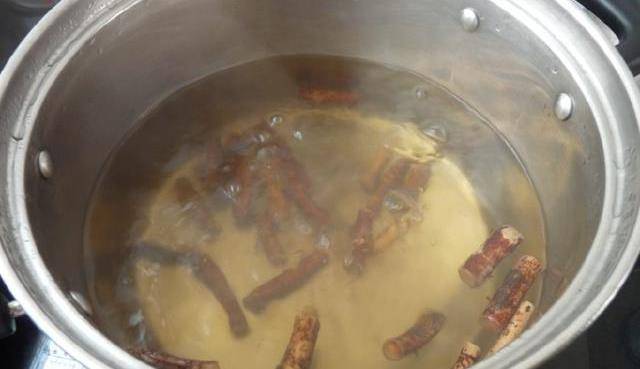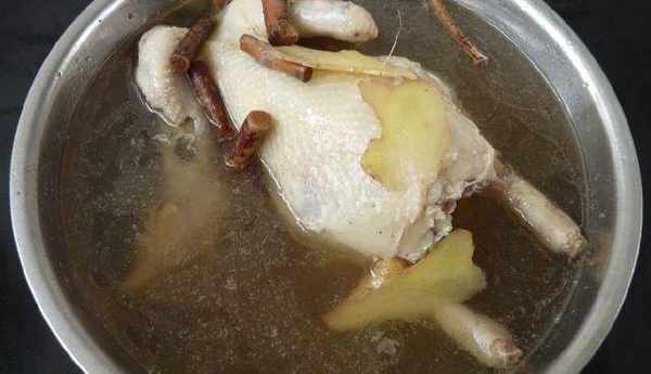 把雞放回鍋裡,五指毛桃水在微沸的狀態下泡浸著雞25分鐘