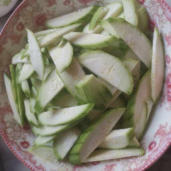 2,絲瓜是這個季節特別好的蔬菜,買的時候選擇嫩一些的絲瓜,表面看起來有絨毛的就是嫩絲瓜。