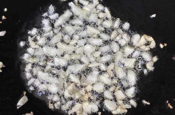 鍋熱油後爆炒蒜碎