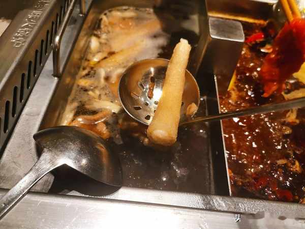 麻辣和菌菇,這樣吃起來不會辣得難受,還可以嘗到不同的滋味。老公喜歡麻辣,而我是很喜歡菌菇鍋的,鮮美的味道很不錯,還喝了兩碗湯,哈哈哈~~