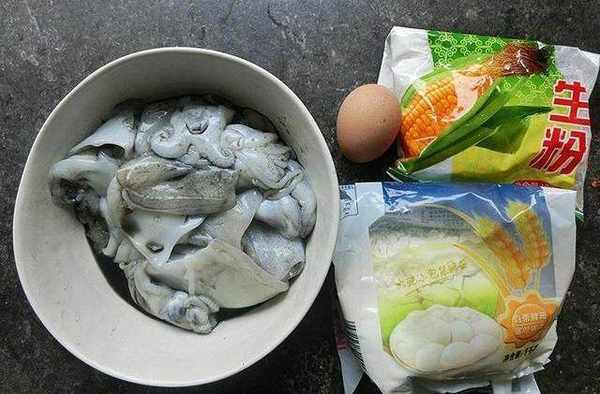【材料】:墨魚500克、生粉30克、面粉30克、雞蛋1個、胡椒粉1茶匙、鹽3茶匙