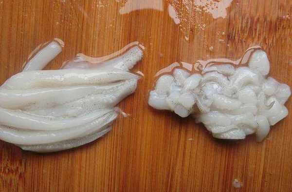 【做法】:1、買墨魚的時候讓老板處理好,拿回來後沖洗幹凈,然後撕去黑色表皮和筋膜,切去頭眼部位;