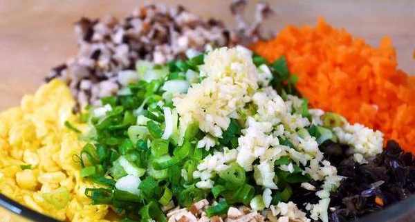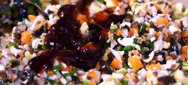 今天我們做一個比肉餡還好吃的素餃子,我們先和面500克面粉加一勺鹽,增加面粉的筋性,用280毫升清水邊倒邊攪拌,攪拌到沒有幹面粉,下手揉成一個面團,醒面20分鐘,這個時間我們來調餃子餡兒,焯過水的香菇切成末,放到一個大碗中,胡蘿卜也切碎,提前泡好的木耳改刀剁碎,來幾塊香幹提味。兩個雞蛋攪散油熱快速地生雞蛋碎。