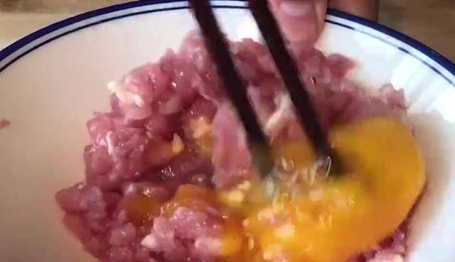 然後依次的擺好,套上一個保鮮袋,醒面一個小時,然後我們再來炸制調料油,準備好以下的食材,油溫燒至5成熱下入所有準備好的食材,用中小火炸,最後炸至焦黃後把幹料撈出來,然後把料油過濾出來備用。再來準備一斤的豬肉,裡面打入一顆雞蛋,攪拌均勻,調制肉餡,我喜歡放一個雞蛋,這樣吃起來肉餡口感不柴,而且特別的嫩滑,加一勺鹽、一勺雞精,適量的蠔油,適量的生抽,順著一個方向攪拌均勻,再根據肉餡的肥瘦程度加入調料油,然後順著一個方向攪拌至上勁,最後加點香油增香就可以瞭。肉餡就已經調好瞭,面團現在這樣就已經醒好瞭,特別的軟。