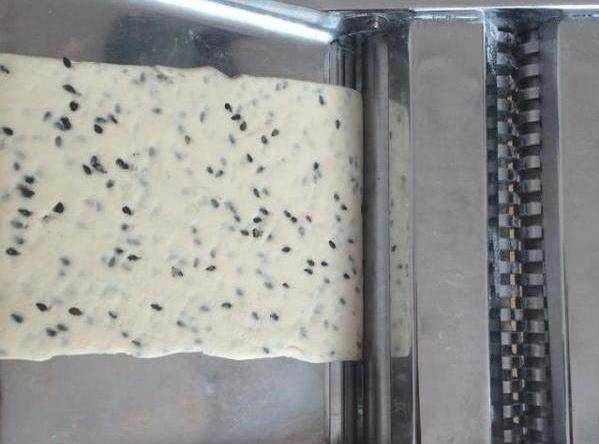 壓好後,將面片切成大概8~10厘米,寬3厘米的長方形