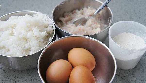 食材:鱈魚1條;米飯1碗;雞蛋3個;面粉80g;蒜瓣3個;蔥頭1個;油、鹽、香油、雞粉、白胡椒粉、料酒各適量。