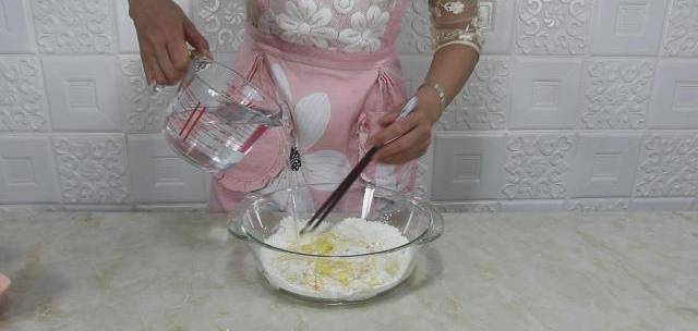 5、取等量的面粉和淀粉,打入一個雞蛋,加適量的鹽和水,攪拌成糊