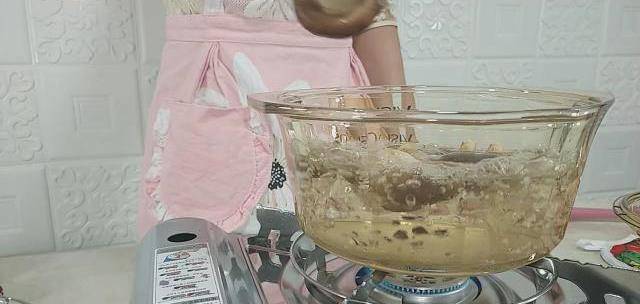 2、鍋中加水燒開後放少許鹽,將香菇焯水2分鐘左右