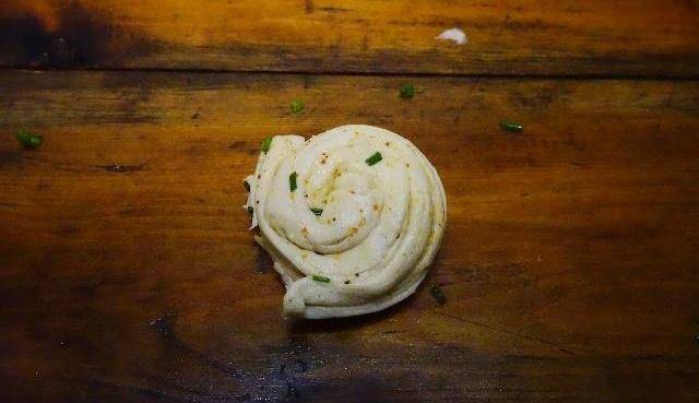 材料:面粉350克溫水225克3克鹽椒鹽適量蔥花