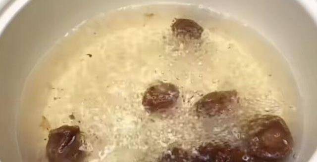 第三步:然後在鍋裡再加一杯清水,放入8-10粒梅,放入5-6粒冰糖,無冰糖可以放入適量砂糖,點火一起煮,然後關火,盛起來自然晾幹。