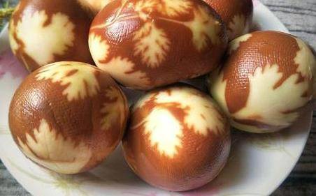 印花鹵雞蛋:1、食材備好。2、雞蛋洗凈,在清水中浸泡10分鐘,煮的時候不容易煮破。3、雞蛋冷水下鍋,水開後再煮7分鐘關火。4、過涼水剝皮,我用瞭7個雞蛋做印花鹵蛋,其它的把蛋殼均勻的敲碎,容易入味。5、把香菜葉子貼在雞蛋上。6、用紗佈包起綁緊,都做好後,開始鹵蛋就行瞭。7、鍋中加水然後下所有調料,大火煮開8、把包好的雞蛋放入熬好的鹵汁中,煮3分鐘,關火浸泡6個小時。9、6個小時後拆開紗佈,裝盤。