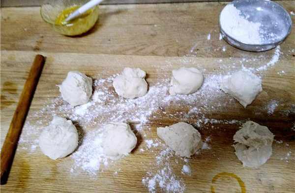 取出醒好的面團,將其分成若幹大小均等的劑子。