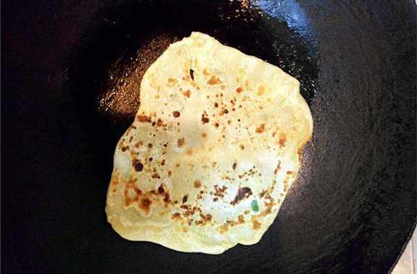 將壓扁的面餅搟成薄一點的面皮,餅胚即制作完成。(話說我滴制作手藝還有待提高,請多多包涵。)