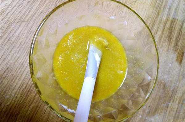 取小碗,加入剛才的蔥油,再加入適量幹面粉和五香粉,用刷子攪拌均勻。