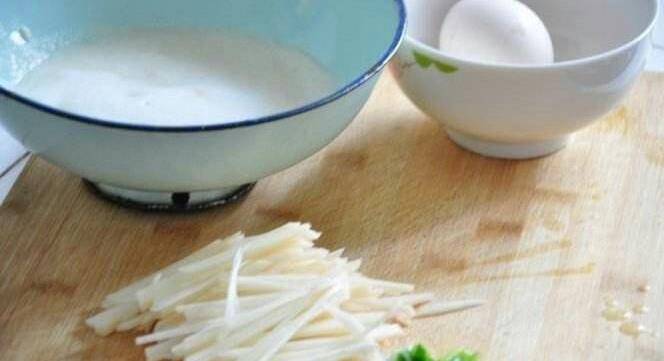 1、土豆去皮洗凈,切成細條狀或薄片,放在大碗裡;