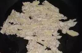4、用鏟子慢慢翻動,防止粘鍋,當土豆面餅煎成焦黃色時,放入蔥花、薑絲,利用底油炸出香味;