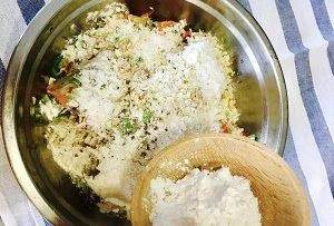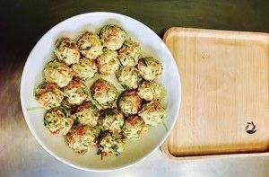 攪拌後擠壓團成丸子,丸子大小,稍小於大拇指和食指搭成園的大小。