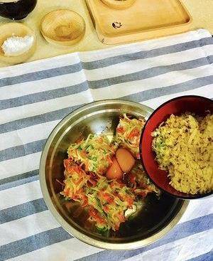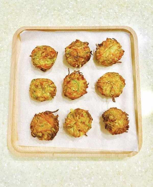 註意:1)傢裡若有老人孩子,蘿卜絲和胡蘿卜絲可以焯水,用手能掐斷時撈出剁碎。若按此程序,鍋內油溫6成熱時,下鍋炸至兩面金黃即可撈出。其他步驟一樣。2)丸子一定不能太大,否則炸不透影響外形色澤。3)丸子下鍋後,火不可以過大容易焦。4)面粉和淀粉,要根據丸子的粘手程度,適當調整,適中能粘住就行。5)擠出的蘿卜絲水留著,可以同時做一個砂鍋白菜豆腐之類。