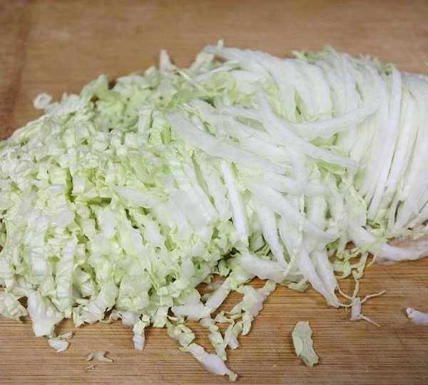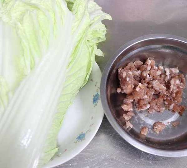 第15步、下面來炒菜做澆頭:豬肉餡和白菜準備好;不限於這些材料,可根據口味和四季做調整。