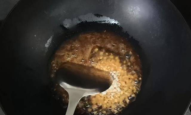 然後鍋中倒入少量的油,切一小塊火鍋底料放入鍋中炒香,炒香後倒入蒜末,切兩三瓣蒜就可以,倒入底料中繼續炒香