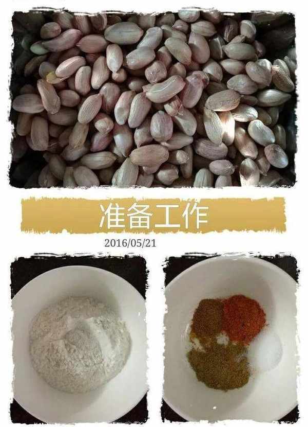 準備:花生1斤,幹淀粉(我用的面粉)兩大勺,白糖3兩,調料:孜然、花椒粉(份量是孜然的2倍)、辣椒粉、鹽等調均勻備用。