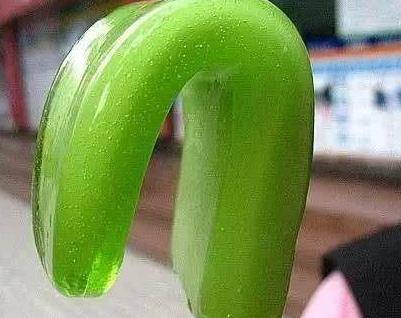 第5種:綠舌頭,一款冰棍,蘋果味的果凍做的,剛開始是硬邦邦的,放嘴裡嗦一會就變軟瞭,Q彈又好玩,吃完舌頭真的會變綠喲。