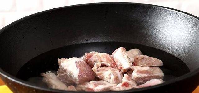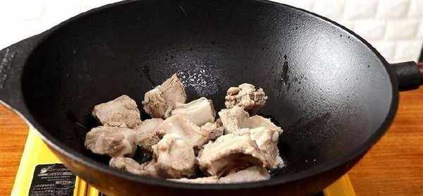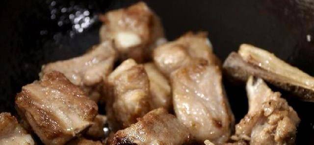 鍋內倒油,燒熱後下排骨翻炒,將排骨炒至表面微黃即可撈出。